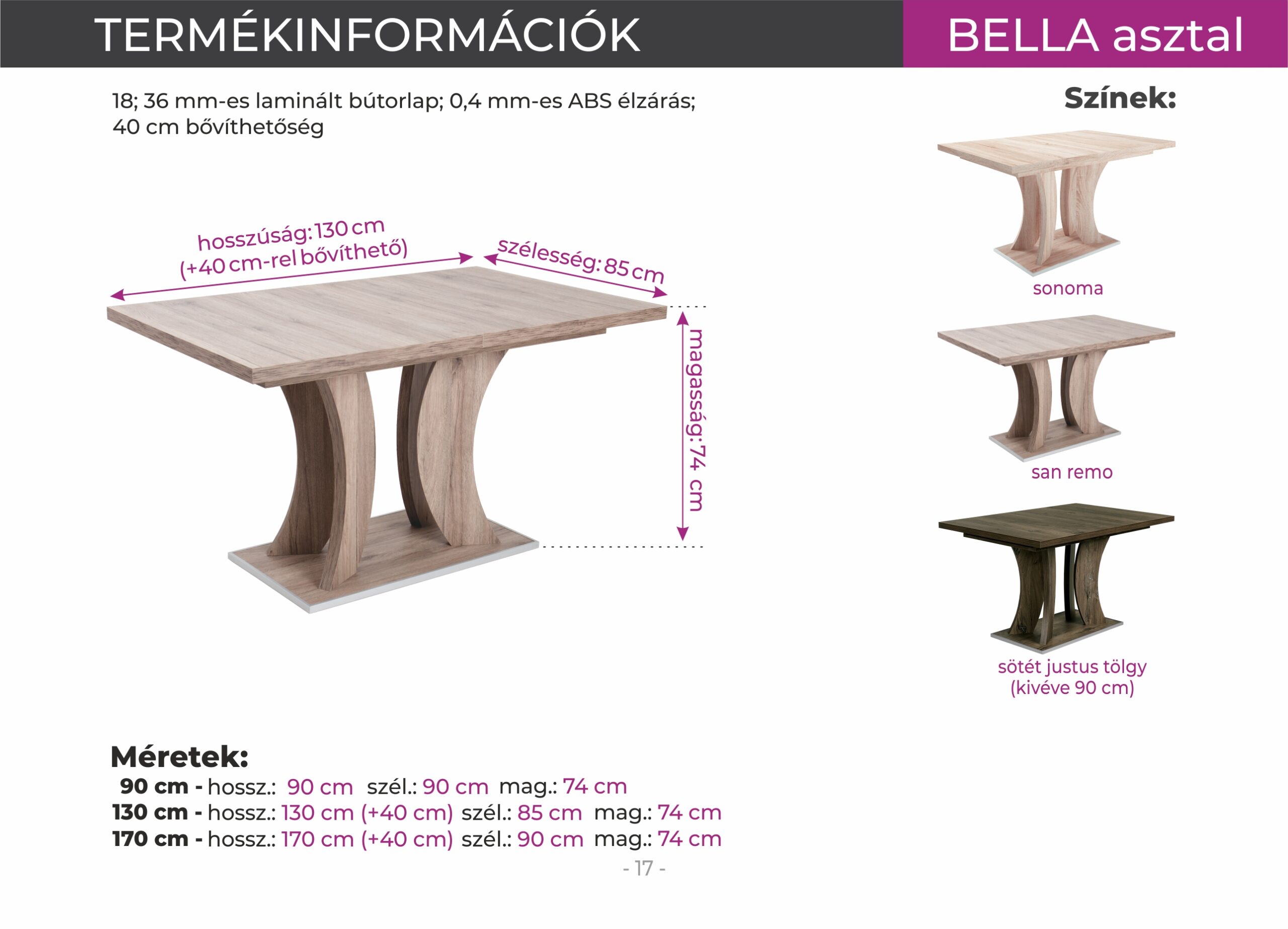 Bella asztal 130+40*85cm
