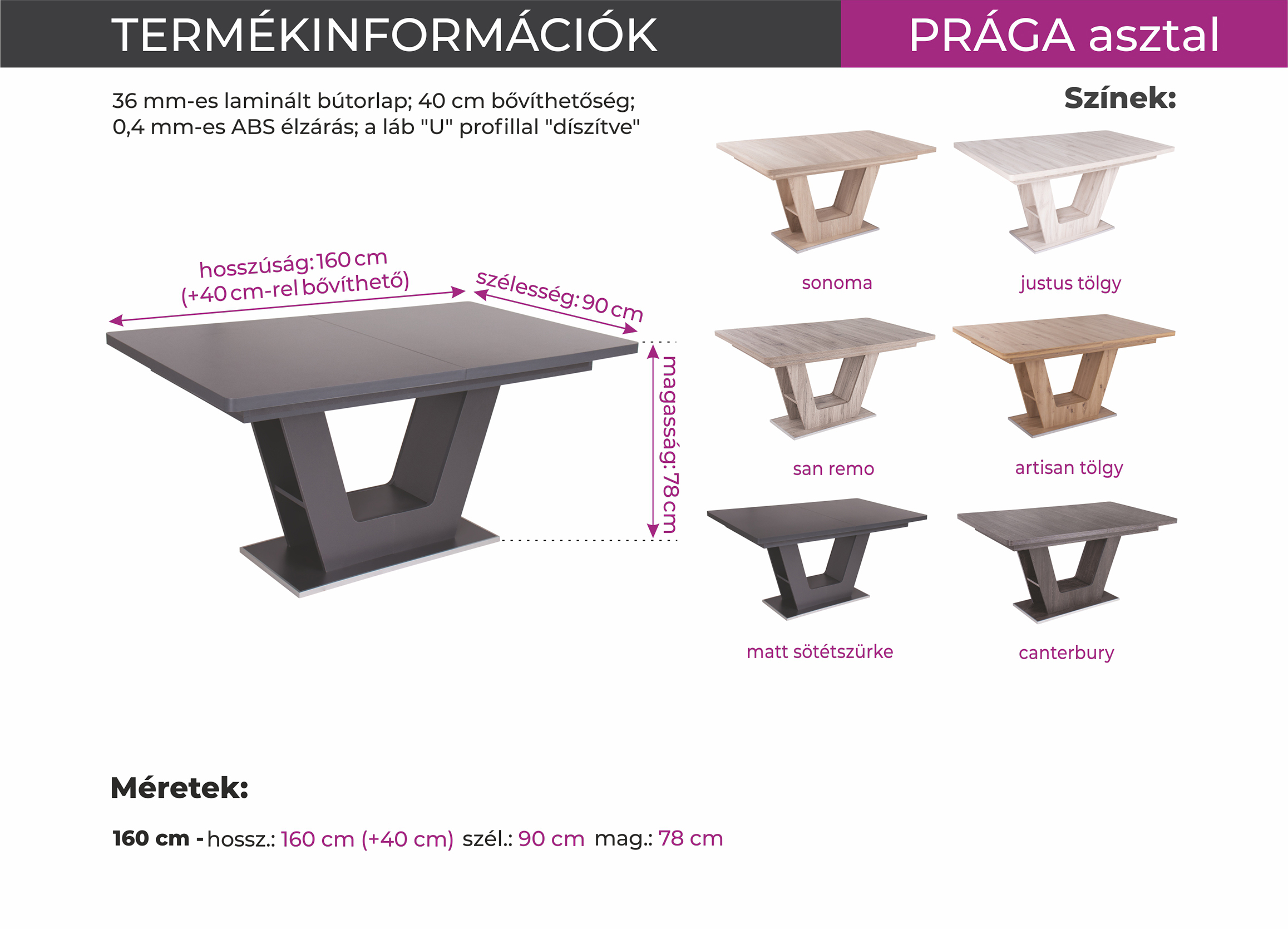 Prága asztal 160*90 (+40)